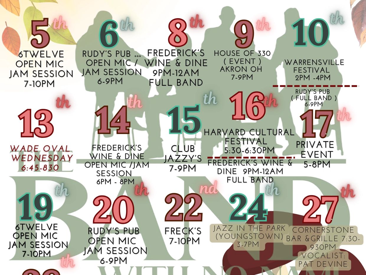 The Band With No Name is a dynamic musical group based out of NE Ohio. We specialize in a variety of genres including jazz, R&B, old school, top 40, and mainstream music.